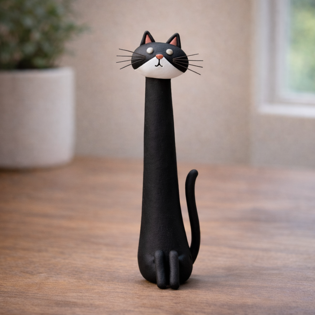 Whether placed on a work desk, bookshelf, or bedside table, this little cat quietly stands guard — judging your life choices like every good cat does.