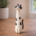 Add a touch of playful charm to your space with this handmade clay cat figurine. Designed with a tall, skinny body and a tiny expressive face, this whimsical cat sculpture brings personality and warmth to any desk, shelf, or cozy corner of your home.